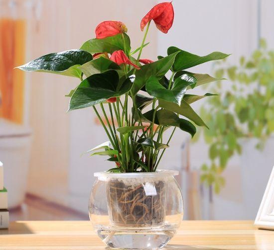 清洁美观:水培红掌无需土壤,因此更加清洁,不易弄脏家居环境,特别适合放置在餐桌或客厅等位置,增加观赏性。